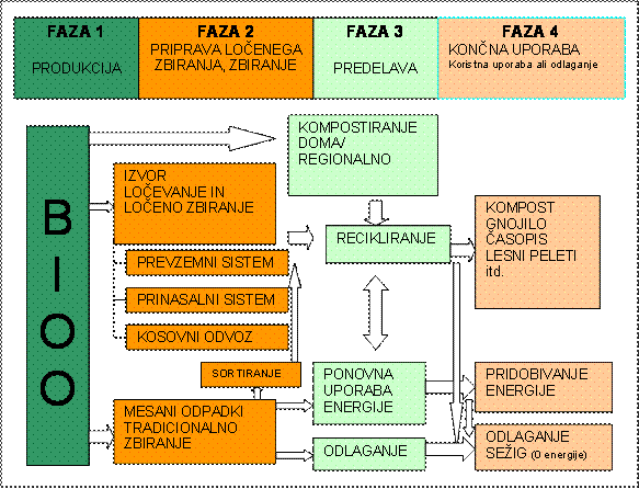 Slika 1 prikazuje tok biološko razgradljivih odpadkov od nastanka do končne uporabe oziroma odlaganja.