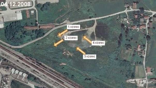 času. Na lokaciji smo določili 4 točke odvzema vzorca. Zemljina je bila vzorčena na