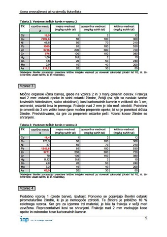težkih kovin (Cd, Cu, Pb, Zn in As). Nadalje sledi vzorec 3, kateremu kritična