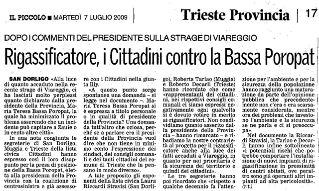 (9. julij 2009) Odziv na odgovor Alpe adria Green v Primorskih novicah na pisanje v članku ˝Zakaj so v Trstu protestirali?˝, objavljenem 8. julija 2009.