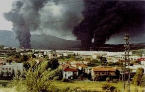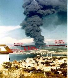 Slika 2 in 2b: teroristični napad na naftne kontejnerje v industrijski coni Trst, leto 1976