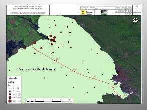 Slika 4: onesnaženost Tržaškega zaliva z živim srebrom v mg/kg morskega blata