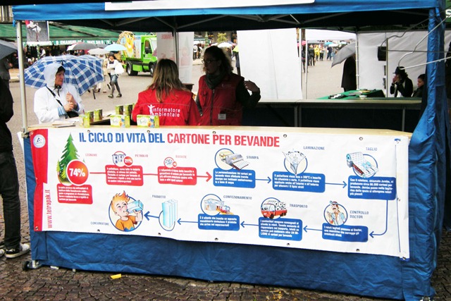 Na jednom štandu je prikazan sistem reciklaže tetrapak papira koji se prikuplja zajedno sa ostalim reciklažnim papirom i tako pomešan reciklira, što je zbog prisustva aluminijuma u sebi izuzetno zahtevan proces. Ovakav način recikliranja tetrapak papira jedinstven je u Italiji i vrlo redak u Evropskoj uniji