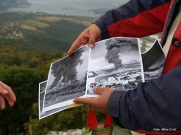 DOC 7 – Slike – V projektu se ne omenjajo možnosti atentatov in raznih terorističnih dejanj, ki so zaradi lahke dostopnosti bodočega plinskega terminala zelo verjetne. V AAG smo, da bi dokazali, da je tak teroristični napad mogoč izvedli 16.09.2009 “TERORISTIČNI NAPAD” z fračami. Z gradu Socerb v smeri proti lokaciji morebitnega bodočega plinskega terminala v Žaveljski dragi smo streljali z orehi.