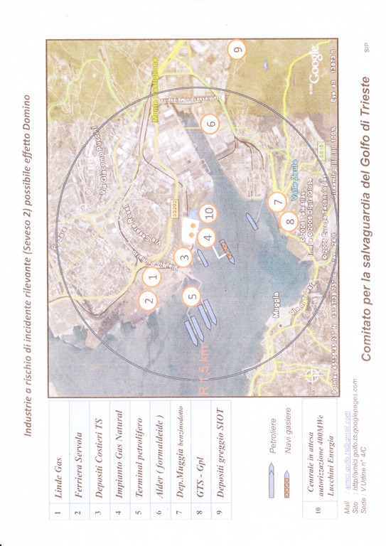 Dosje, ki smo ga pripravili, nam prikazuje pretresljiv razpad dela institucij. Že vrsto let se javne ustanove, ki med seboj konkurirajo, trudijo, da ne bi uporabile zakonov o varnosti državljanov v primeru tveganja nesreč v industrijskih objektih. In to veliko dezinformativno prikrivanje je pripomoglo, da je projekt plinskega terminala španske družbe Gas natural v Trstu dobil, prosto pot za izgradnjo.