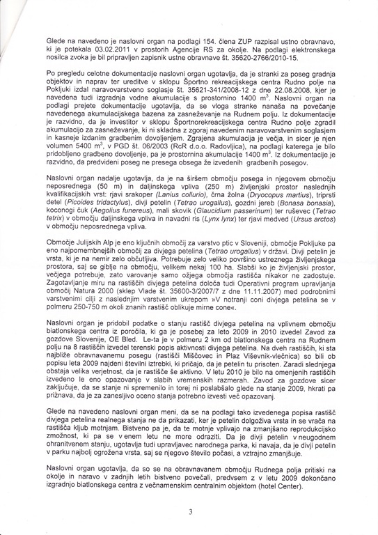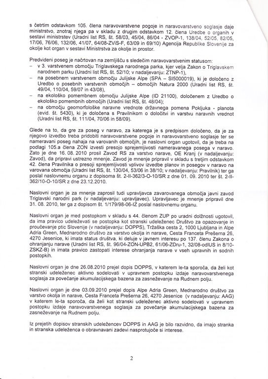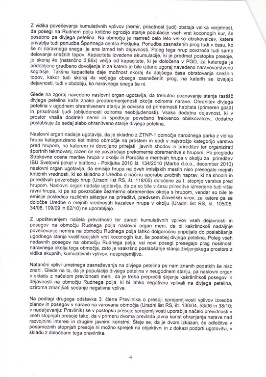 ALPE ADRIA GREEN IN DOPPS, KOT STRANSKA UDELEŽENCA V POSTOPKU »POVEČANJE AKUMULACIJSKEGA BAZENA ZA ZASNEŽEVANJE NA RUDNEM POLJU«, DOKAZALI DA ŽE ZGRAJENI AKUMULACIJSKI BAZEN NA RUDNEM POLJU, ZARADI PREVELIKIH VPLIVOV NA OKOLJE IN NARAVO NE MORE DOBITI NARAVOVARSTVENEGA SOGLASJA