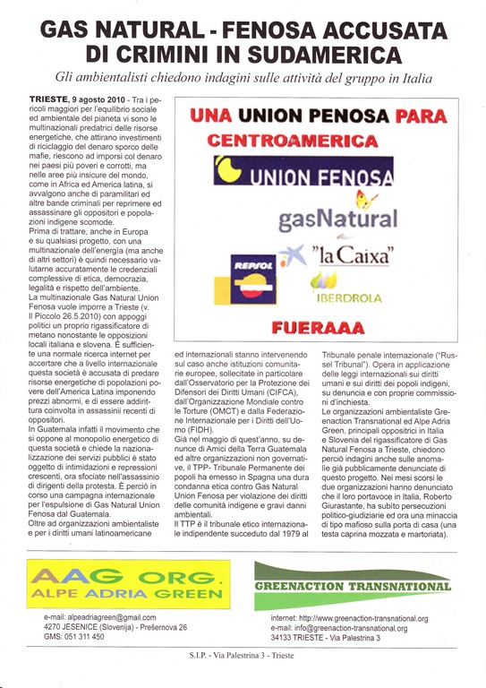 The Gulf of Trieste is already under heavy threat due to one of the most important mediterranean oil terminals that occupy the city industrial area. The attack to the oil terminal of the year 1972 was devastating; for this reason AAG cannot allow the creation of additional hazardous risks to the environment and to its population.
