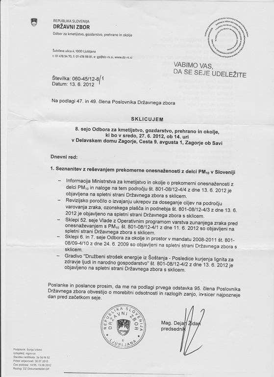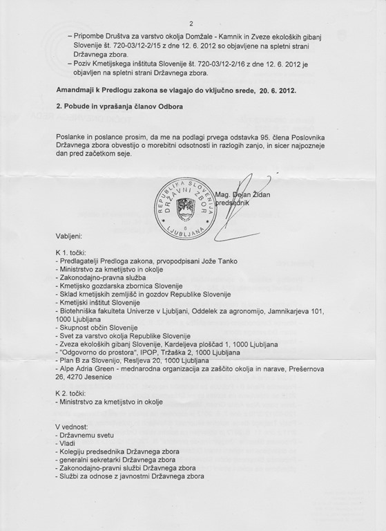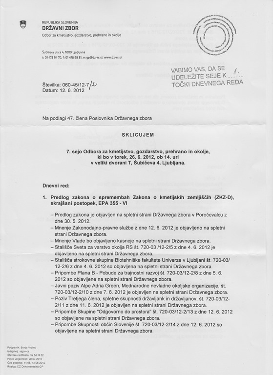 Seji odbora Državnega Zbora RS za kmetijstvo, gozdarstvo, prehrano in okolje, na kateri je vabljena tudi Alpe Adria Green
