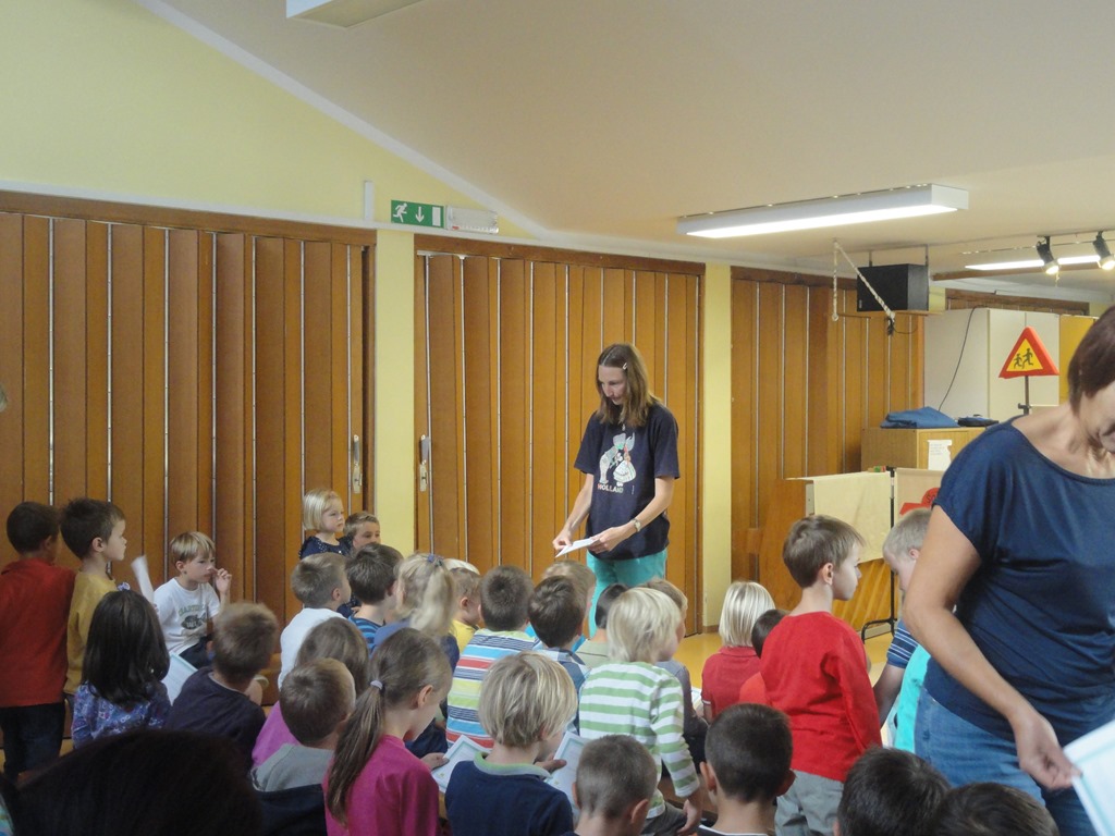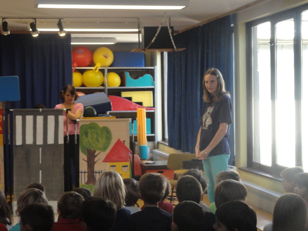Dejavnost se je začela ob 10.00 uri. V telovadnici vrtca smo pripravili sceno, tri skupine otrok starih od 4-6 let so se nam pridružili ob 10.00 uri.