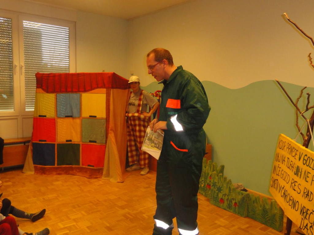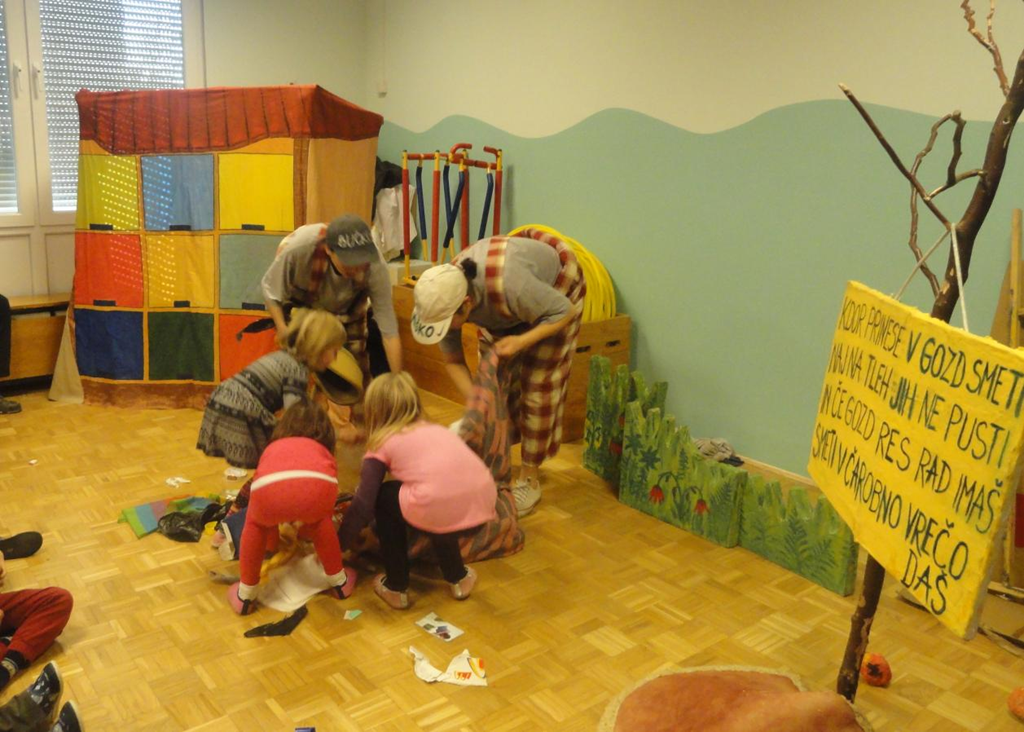 Našim najmlajšim smo skozi akcijo osveščanja skušali približati gozd kot življenjski prostor mnogoterih živali in rastlin, katerega človek s svojo dejavnostjo velikokrat onesnaži. Pokazali smo, da je čist gozd prijazen do živali, rastline se bohotijo in človek je v takem gozdu nagrajen. Skozi gledališko igrico smo gozd simbolično očistili, smeti spravili v čudežno vrečo. Kam s čudežno vrečo pa so spretno prikazali sodelavci Jeko-In. Prikazali so pomen zbiranja odpadkov in pravilen način ločevanja.