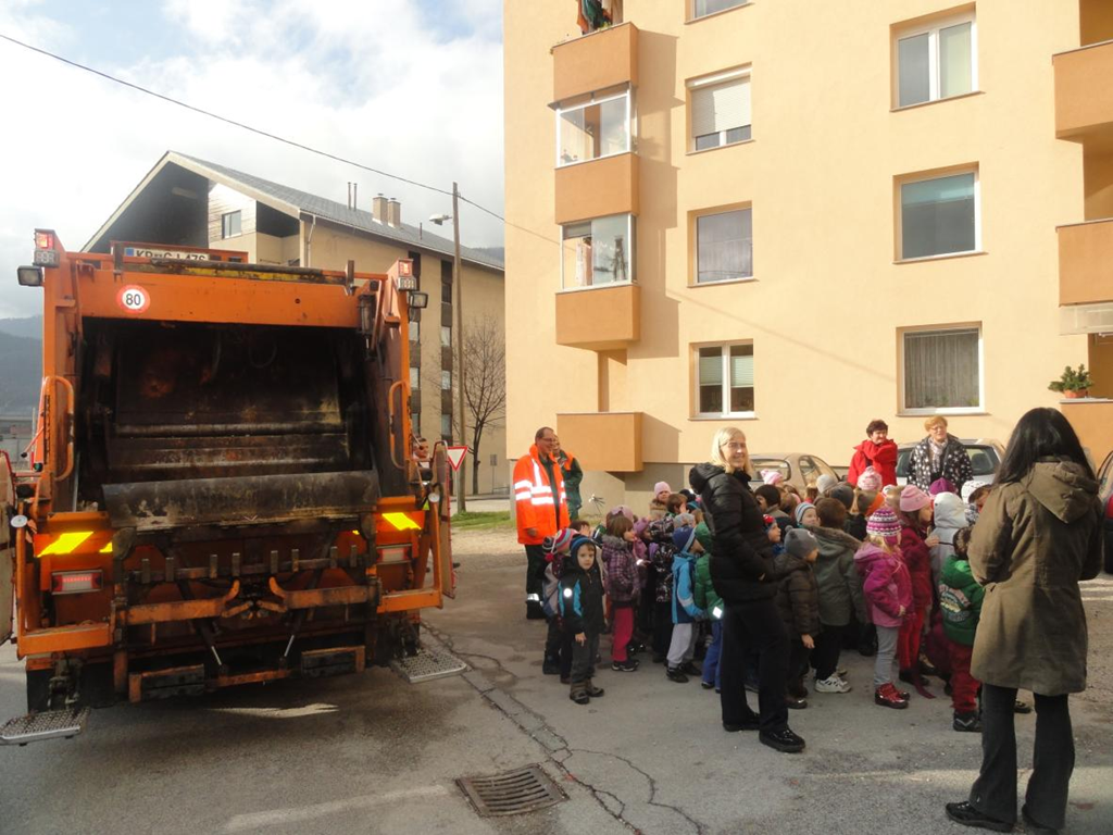 Z odprtimi usti so poslušali Strica smetarja in mu sledili ven, kjer so sodelovali pri ločevanju odpadkov – ugotavljali kam gre kakšne odpadek in so temeljito ogledali smetarsko vozilo.