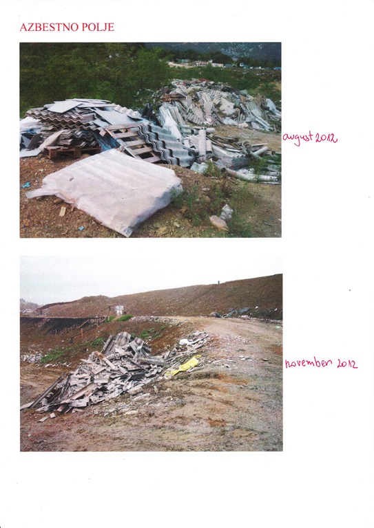 – ponovni ogled je opravila 22.01.2013 ter ugotovila da je stanje nespremenjeno ali pa se je količina odloženega azbesta povečala ( Slike v prilogi)