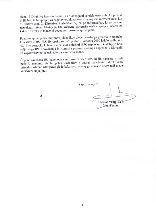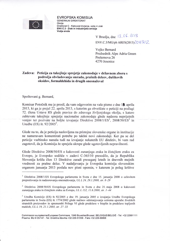 Zadeva: PETICIJA DRŽAVLJANOV REPUBLIKE SLOVENIJE ZA TAKOJŠNJE SPREJETJE EU-USTREZNE ZAKONODAJE V DRŽAVNEM ZBORU S PODROČJA OBVLADOVANJA SMRADU, PRAŠNIH DELCEV, DUŠIKOVIH OKSIDOV, FORMALDEHIDA IN DRUGIH ONESNAŽEVAL