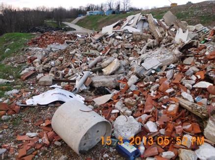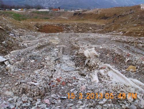 Azbestni odpadki pomešani z gradbenim materialom niso odloženi na polju za azbestne odpadke.