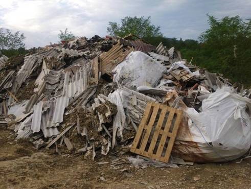 Kljub temu, da nimajo dovoljenja za odlaganje azbestnih odpadkov nevarne azbestne plošče nezaščitene ležijo ob vstopu na azbestno polje. Azbestne odpadke so odlagali nezaščitene, pri čemer so prosto ležali na odlagališču, niso niti zaviti v foliji niti dodatno prekriti s plastično folijo. Ponekod so pomešani z ostalimi odpadki (gradbeni material, pločevinke, plastične cevi, karton, …) in odloženi tudi izven polja, namenjenega za odlaganje azbestnih odpadkov. Po zakonu bi morali odlagati samo gradbene odpadke, ostale pa,ki vsebujejo trdno vezani azbest, in druge trdno vezane azbestne odpadke odlagati v posebnih odlagališčnih poljih ločeno od drugih odpadkov.
