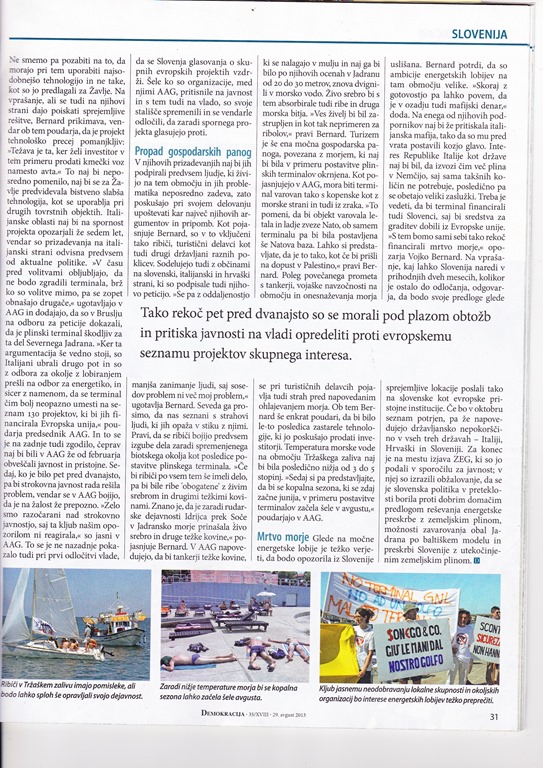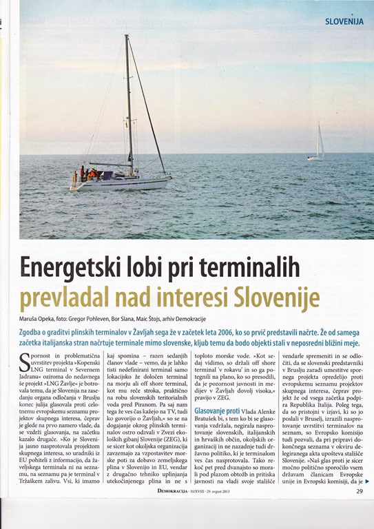 Energetski lobi pri terminalih prevladal nad interesi Slovenije- članek Demokracija