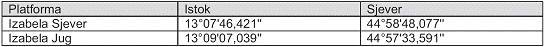 1) Lokaciji delojočih ploščadi »IZABELA« in »IVANA –A«