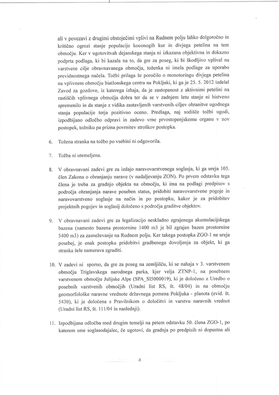 Rudno polje – Za zbiralnik vode, ki so ga zgradili v sklopu ureditve biatlonskega centra na Pokljuki, pristojnim še vedno ni uspelo dobiti okoljevarstvenega soglasja. Po sedaj veljavnem gradbenem dovoljenju bi moral biti namreč trikrat manjši, kot so ga dejansko zgradili. Zato pri Smučarski zvezi Slovenije (SZS) pripravljajo novo vlogo za pridobitev okoljevarstvenega soglasja za bazen kot zalogovnik požarne vode, kar bi jim omogočilo pridobitev gradbenega dovoljenja za zbiralnik v sedanjem obsegu. Prizadevanja smučarske zveze podpirajo tudi pri Gasilski zvezi (GZ) Bled-Bohinj, je poudaril namestnik predsednika zveze Jakob Por, za okoljevarstvenike pa je bazen v tem obsegu, četudi bi vodo iz njega uporabljali za gašenje, nesprejemljiv.