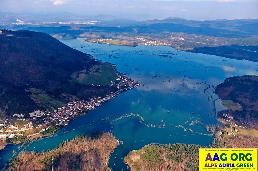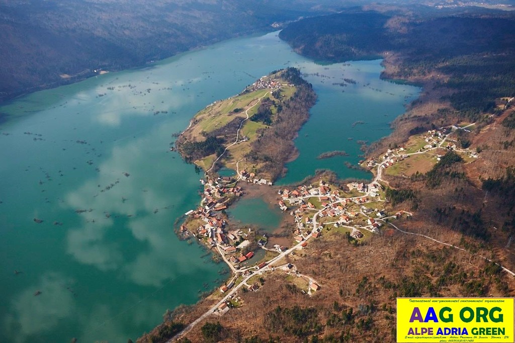 Poplavljeno Planinsko polje / cca 40 hiš pod vodo / v ozadju Jakovica in Laze