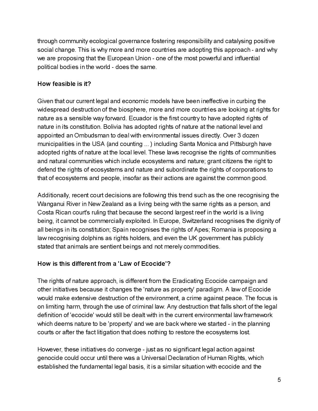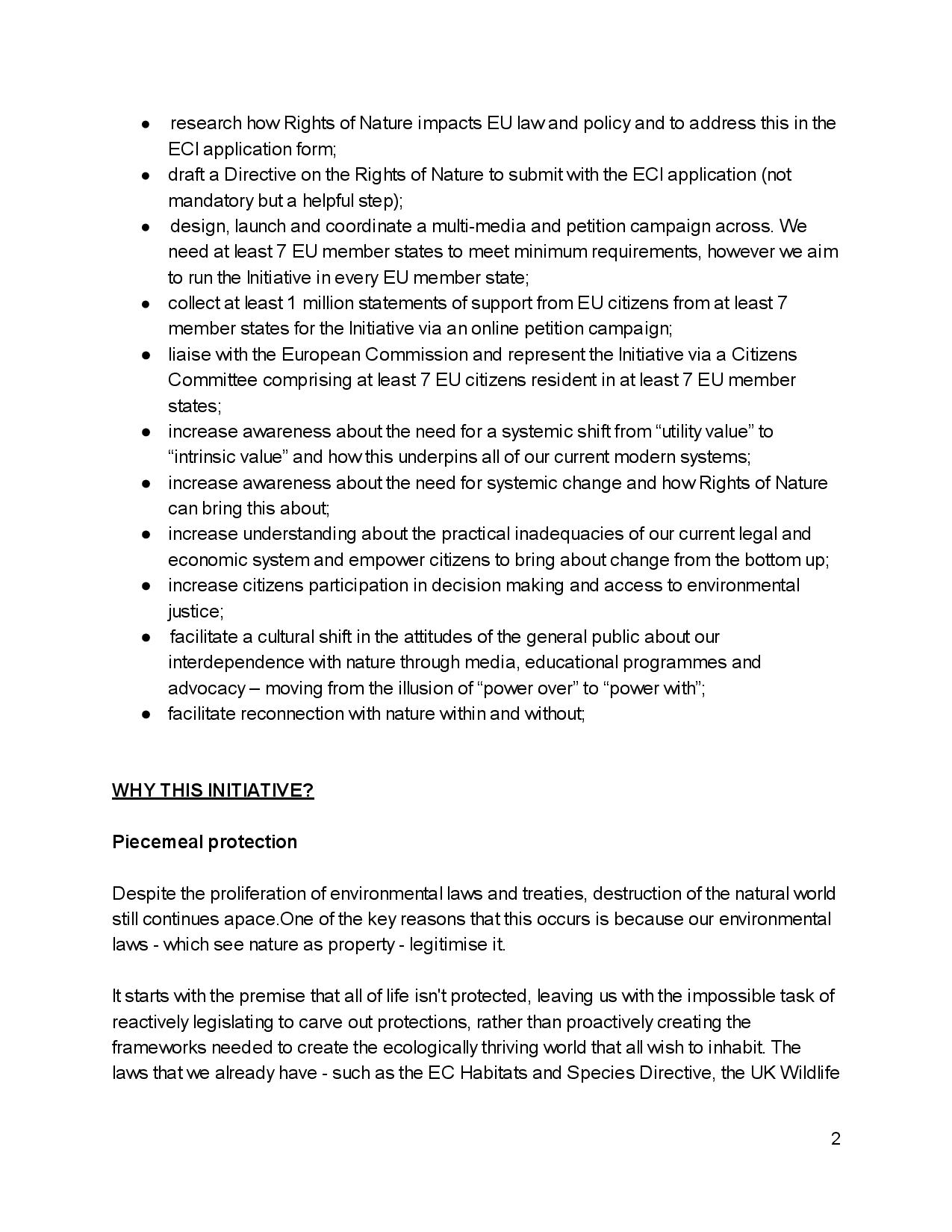 ECI PROJECT – A EUROPEAN CITIZENS INITIATIVE FOR RECOGNISING AND RESPECTING THE INTRINSIC RIGHTS OF NATURE