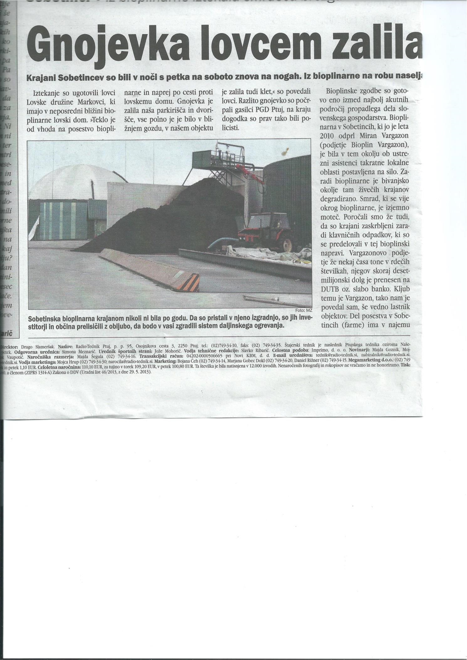 Bioplinske zgodbe so gotovo eno izmed najbolj akutnih področij propadlega dela slovenskega gospodarstva. Bioplinarna v Sobetincih, ki jo je leta 2010 odprl Miran Vargazon (podjetje Bioplin Vargazon), je bila v tem okolju ob ustrezni asistenci takratne lokalne oblasti postavljena na silo. Zaradi bioplinarne je bivanjsko okolje tam živečih krajanov degradirano. Smrad, ki se vije okrog bioplinarne, je izjemno moteč. Poročali smo že tudi, da so krajani zaskrbljeni zaradi klavničnih odpadkov, ki so se predelovali v tej bioplinski napravi. Vargazonovo podjetje že nekaj časa tone v rdečih številkah, njegov skoraj desetmilijonski dolg je prenesen na DUTB oz. slabo banko. Kljub temu je Vargazon, tako nam je povedal sam, še vedno lastnik objektov. Del posestva v Sobetincih (farme) ima v najemu kmetovalec Branko Korošec iz Moškanjcev, bioplinsko napravo ima v najemu podjetje Pulverem iz Maribora. Je pa vprašanje, v kakšni meri naprava sploh deluje, saj je v prvi polovici letošnjega leta na njej prišlo do strojeloma, ki naj bi bil posledica večmesečnega nedelovanja.