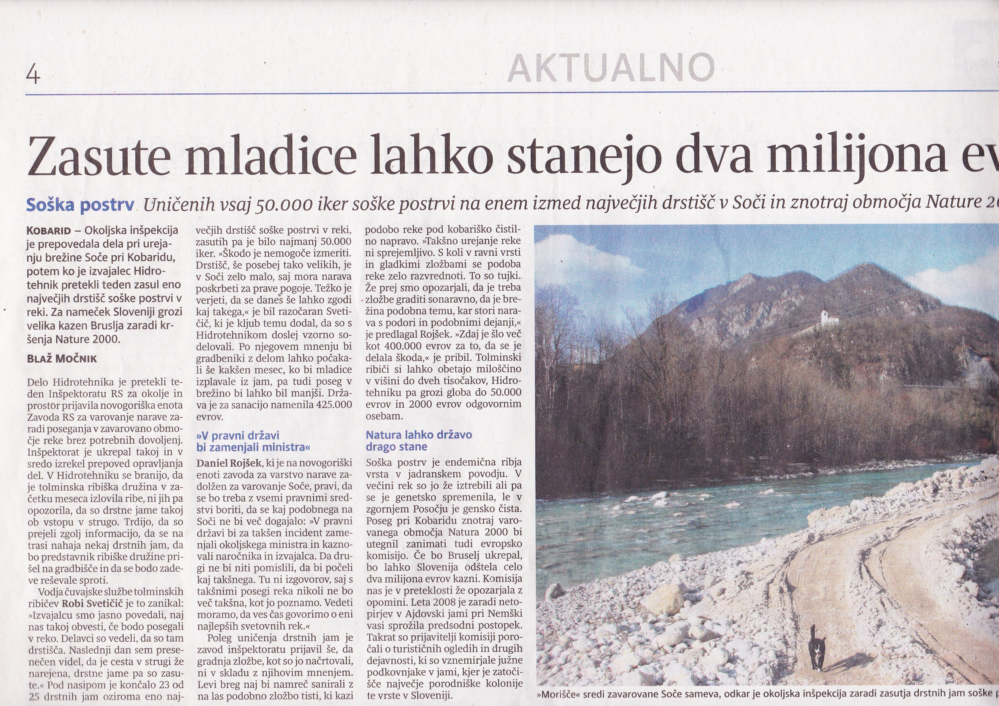 Soška postrv – Uničenih vsaj 50.000 iker soške postrvi na enem izmed največjih drstišč v Soči in znotraj območja Nature 2000