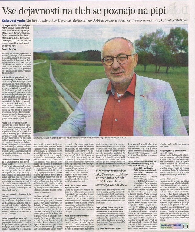 Ljubljana – Ljudje si pod pojmom čista voda predstavljajo čisto različne stvari, ugotavlja Mihael Jožef Toman, redni profesor z biotehniške fakultete. Manjka zavedanje, da vse, kar poškropimo po tleh pa tudi zlijemo v straniščno školjko, najde pot do pipe.