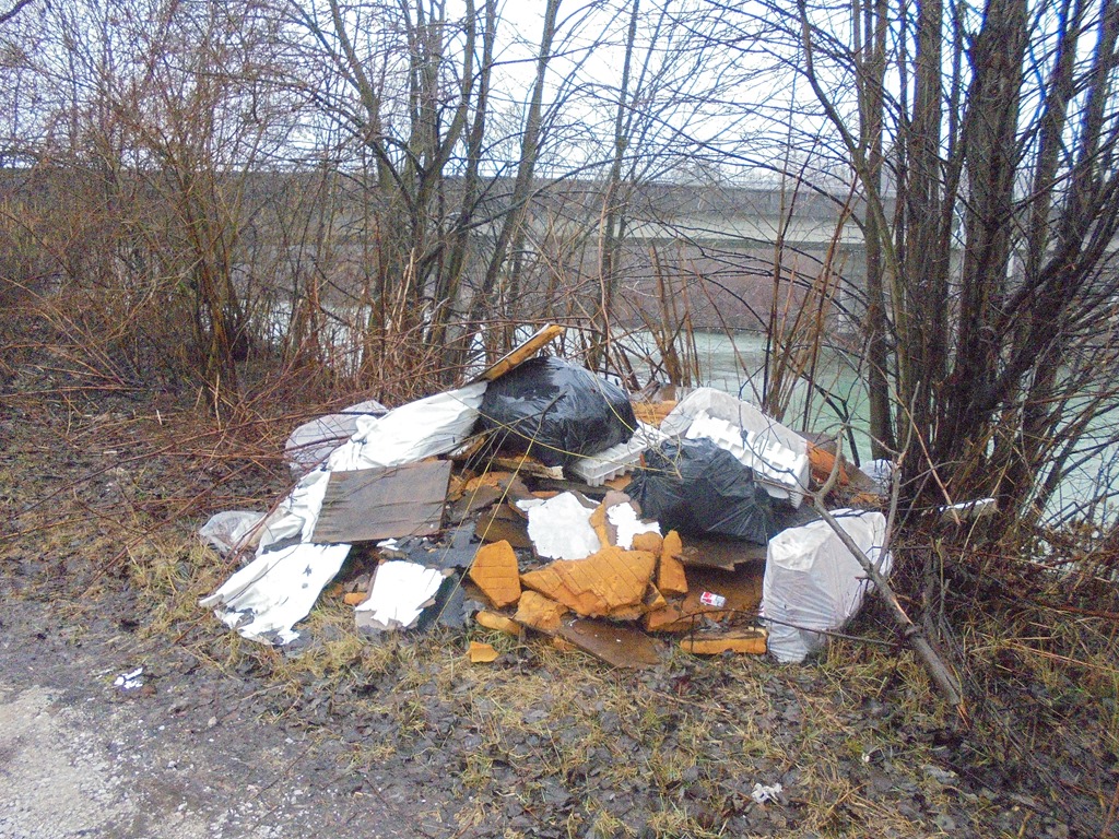 smeti, neposredno ob reki Ljubljanici v Sp. Kašlju pri mostu čez Ljubljanico (Sp. Kašelj – Zavoglje).: