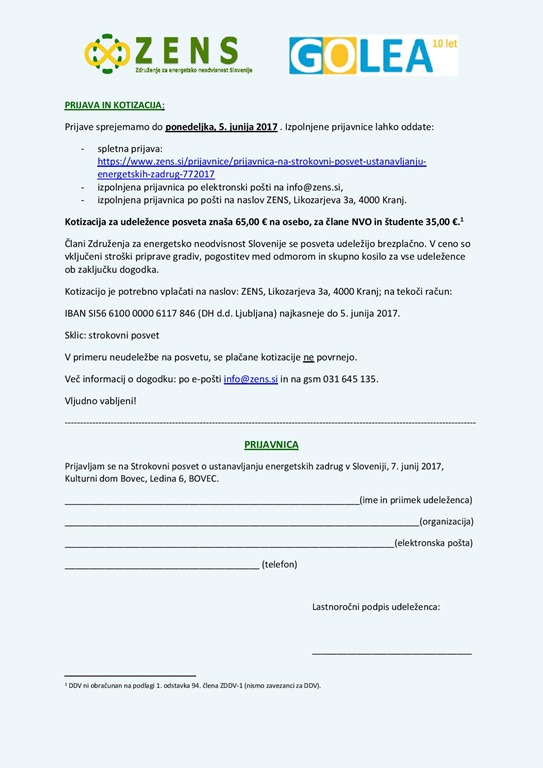 Izpoljeno prijavnico pošljite po e-pošti: bozo.dukic@zens.si