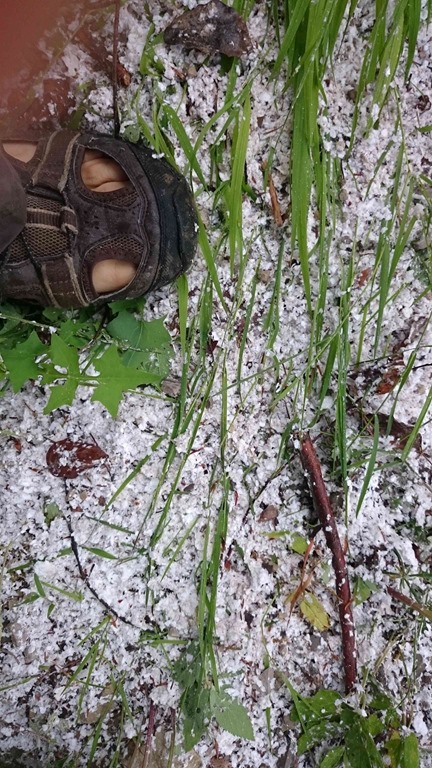 Na poti smo opazili belo snov, ki je bila videti kot kristali. Ker je deževalo smo od začetka mislili, da je padala pred kratkim toča, pa ni bilo tako.