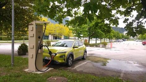 Polnilna postaja za električna vozila, ki jo je v sklopu projekta e-pol v sodelovanju dijakov SESGŠ v decembru 2018 v Kranju postavila Alpe Adria Green