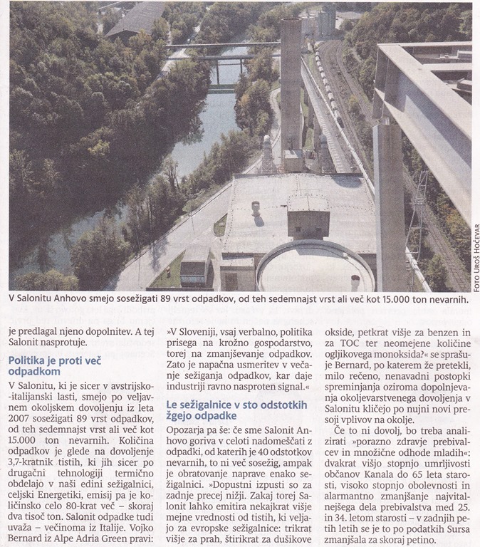 Salonit Anhovo že zdaj sme emitirati nekajkrat več kot sežigalnice, a za četrtino več odpadkov zanje ni velika sprememba.