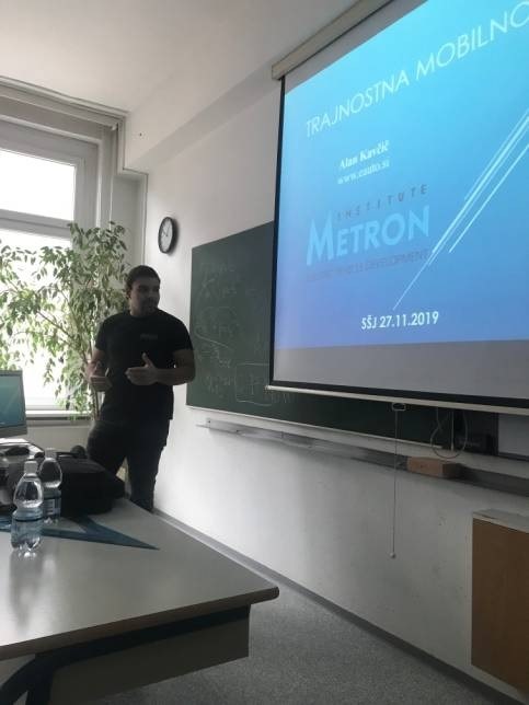 V Srednji šoli Jesenice smo v sredo, 27.11. 2019 izvedli predavanje O trajnostni in električni mobilnosti v nizu predavanj o trajni mobilnosti za dijake srednjih tehniških šol po celotni Sloveniji. Predavanja so del aktivnosti projekta E-Voz, ki ga vodi in izvaja AAG v sodelovanju z Inštitutom Metron in go na podlagi javnega razpisa za NVO 2019 sofinancira Eko sklad RS.