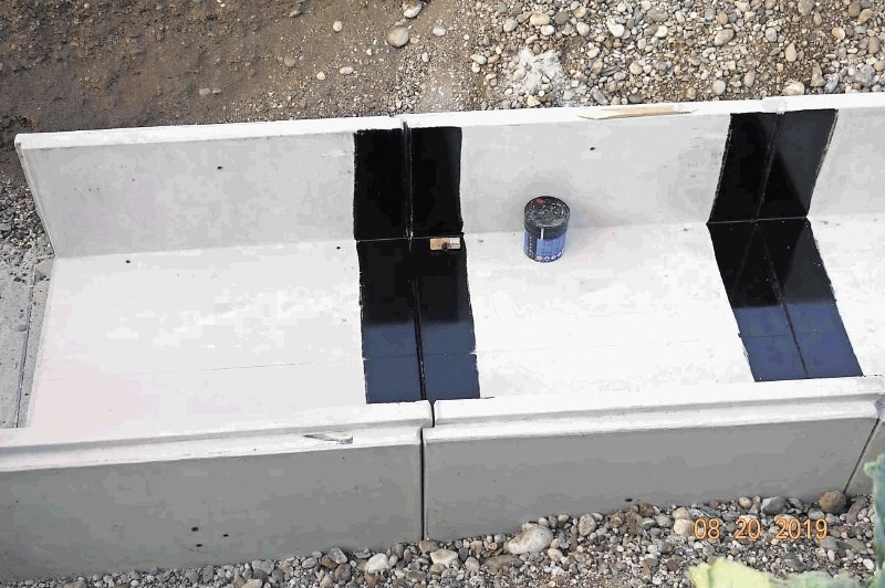 »Prebarvani« ne-vodotesni stiki betonskega »sarkofaga« brez vseh potrebnih vmesnih tesnil.