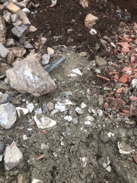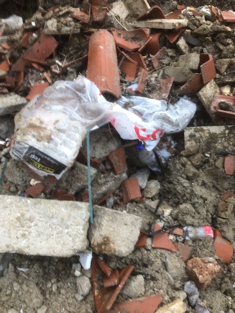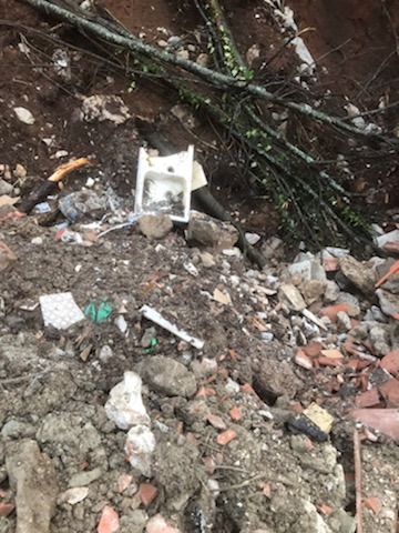 odpadke. Verjetno gre za gradbe odpadke, odpadno plastiko in embalažo. Odpadki iz