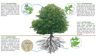 Že dolgo so znane rastline z visoko sposobnostjo čiščenja tal, ki spreminjajo kemijsko stanje tal, njihove korenine in mikroorganizmi, ki živijo z njimi, izločajo vsebine, ki netopne težke kovine spremenijo v topne. Delujejo tudi tako, da ustvarijo talni medij, ki ne dopušča izpiranja težkih kovin.