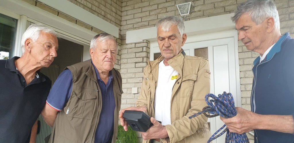 Foto AAG: Člani CI Vrtojba, članica EkoŠtandreža iz sosednje Italije in predsednik AAG – Opravljanje terenskih meritev kakovosti vode.