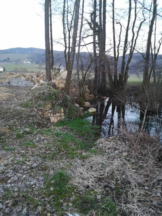 Po slikah lahko vidite, da je z navozom materiala (ni ga ravno malo) povsem zaprl prepustnost vode in je posledično tako poplavil del gozda.