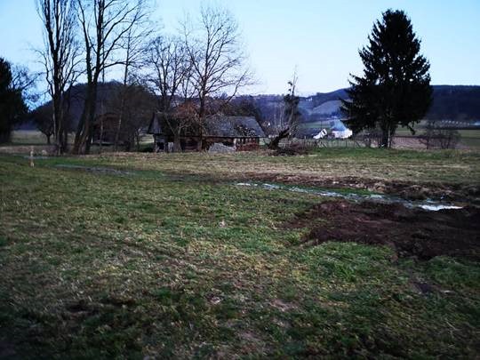 NAVAŽANJE ZEMLJE V »JAREK, GRABEN« PO KATEREM JE DESETLETJA ODTEKALA IN SE ZADRŽEVALA ODVEČNA VODA V ČASU VEČJE KOLIČINE VODE. SEDAJ JO ZASIPAVAJO IN DVIGUJEJO TEREN. S TEM VODA ODTEKA NA DRUGE PARCELE.