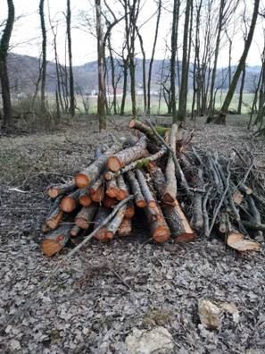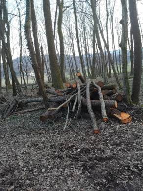 Z delavnim strojem podirajo drevesa. Po rušenju dreves je izkopal luknjo in zemljo navozil na njivo da je lahko pokril melioracijski jarek na svoji njivi, v luknjo pa zvozil odpadni material ter ga pokrili z zemljo tako da se v primeru inšpekcije ničesar ne vidi.