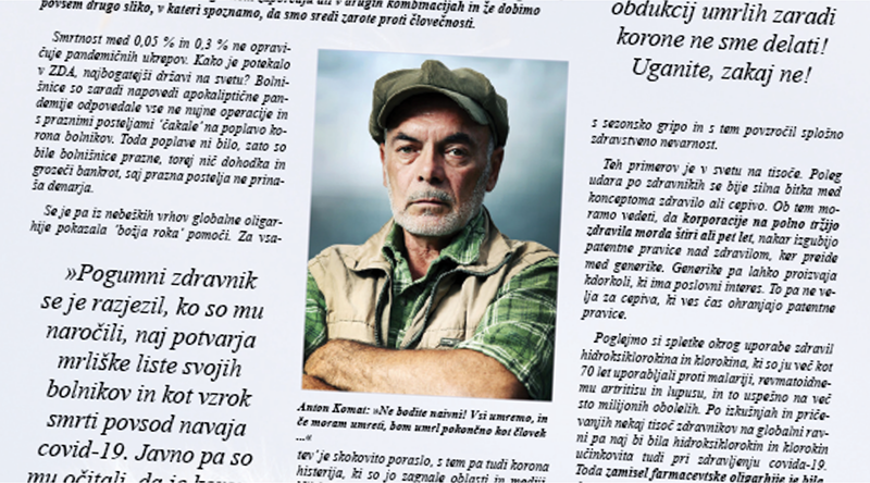 »Pogumni zdravnik se je razjezil, ko so mu naročili, naj potvarja mrliške liste svojih bolnikov in kot vzrok smrti povsod navaja covid-19. Javno pa so mu očitali, da je korono primerjal s sezonsko gripo in s tem povzročil splošno zdravstveno nevarnost. Teh primerov je v svetu na tisoče.«