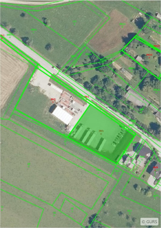 nočnem času izvedli EKO PATRULJI AAG. Predhodno smo ugotovili da »kamionsko parkirišče« leži na dveh parcelah v Katasterski občini NOVA VAS. Prva parcela 39/1 ima vpisano namensko rabo – druge urejene zelene površine in površine podeželskega naselja, druga parcela 39/2 pa ima vpisano nomenjsko rabo – druge urejene zelene površine.