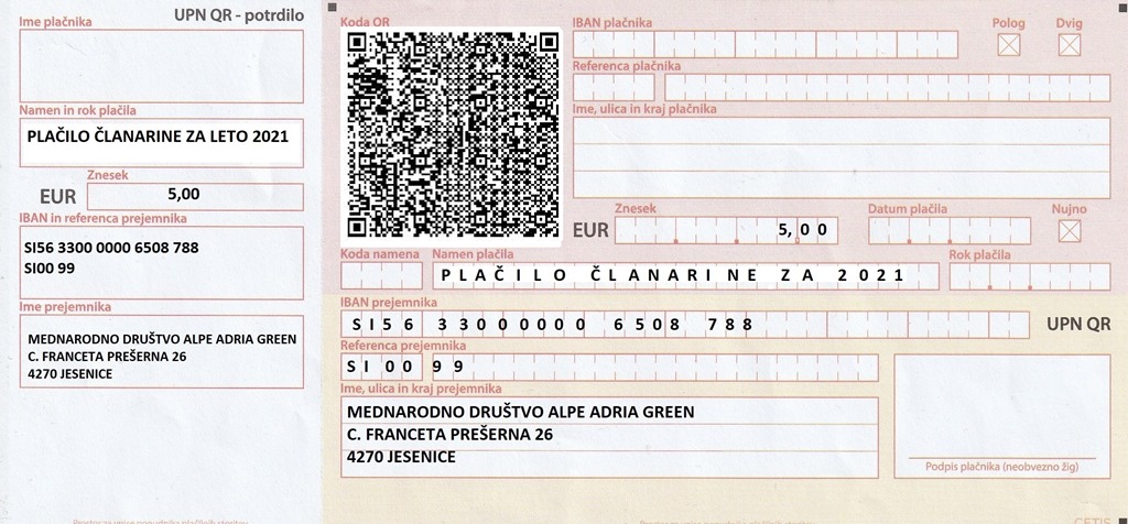 Članarino lahko poravnate preko položnice, ali spletne banke na TTR: SI56 3300 0000 6508 788 ( KODA QR JE PRAVILNA!)