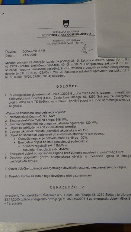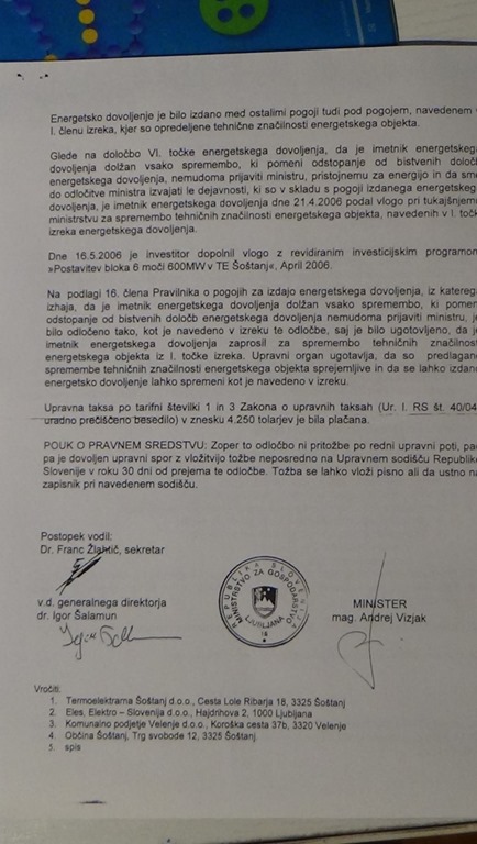 Dr. Dušan Plut je ministra Andreja Vizjaka v oddaji opomnil, da je podpisal energetsko dovoljenje za TEŠ 6. To je minister zanikal in pozval dr.Dušana Pluta, da naj mu pokaže kakršen koli dokument o TEŠ-u z njegovim podpisom. V AAG smo pridobili dokument, ki dokazuje resničnost navedb dr. Dušana Pluta. Sprašujemo se zakaj, Andrej Vizjak kot minister za okolje in prostor zavaja javnost?