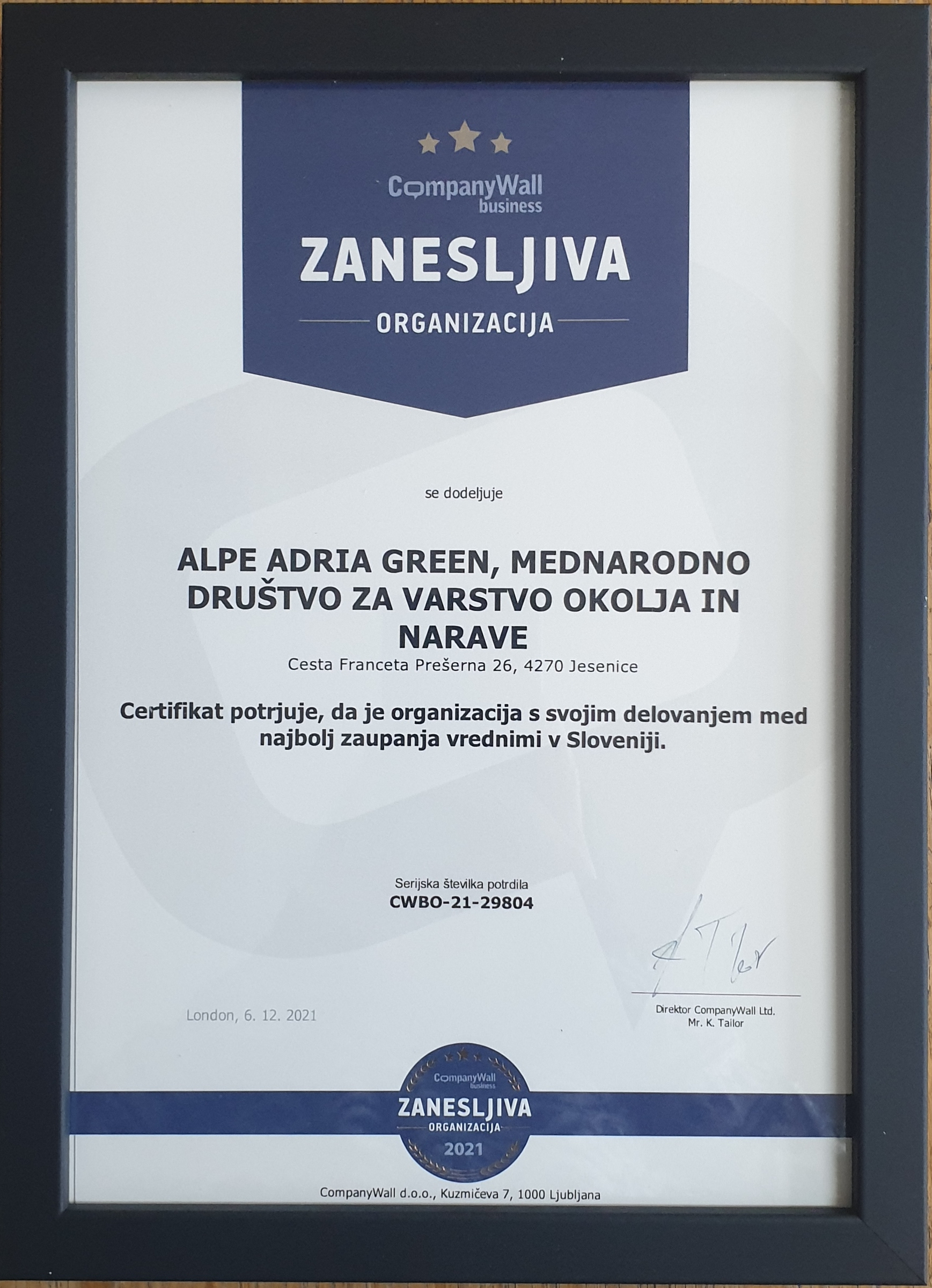 COMPANY WALL PODELILO PRIZNANJE ALPE ADRIA GREEN