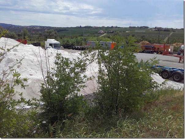 AAG je 21.08.2019 opravil na tej lokaciji EKO PATRULJO ter ugotovil, da je območje spremenjeno v servisno delavnico in deponijo pnevmatik za tovornjake. Dobršen del uravnave obsega »hrib«, nekaj tisoč ton kuhinjske soli. Ni položen na neprepustno podlago, še manj je zaščiteno spiranje slane vode v enega od razbremenilnikov reke Rižane, uporabljenim tudi za namakanje. Sodeč po posnetku z Google-zemlja in ostankih soli med gramozom, je bil obseg deponije mnogo večji, kot je znašal ob ogledu AAG-patrulje.