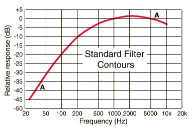 - Diagram filtra A nam pove, da filter omeji zaznavo hrupa VE pod 200 Hz (nizkofrekvenčni hrup), skoraj povsem pa ignorira infrazvok (pod 20 Hz). Filter A je namreč prilagojen našemu ušesu, ki manj zaznava frekvence hrupa pod 200 Hz, infrazvoka pa ne zaznava. Seveda pa ta hrup vseeno obstaja, čeprav ga naša ušesa manj ali nič ne slišijo, kar seveda ni merilo za hrup, saj nas hrup vseeno zadene kot vibracije, ki škodujejo našemu zdravju, notranjim organom (nekateri imajo lastno frekvenco v tem območju) in se pulzi v sobah še okrepijo (infrazvok prodre skozi zaprta okna). Pulzni hrup, merjen v decibelih dB brez filtra A, doseže visok nivo, tudi 100 dB.