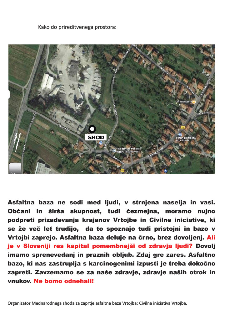 MEDNARODNI SHOD ZA ZAPRTJE ASFALTNE BAZE VRTOJBA BO 03.06.2023 OB 10.00 V VRTOJBI – izjava Ci Vrtojga in izjava CI Šentjanž – Italija