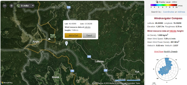Iz objave študija Alepadriagreen je razvidno, da so pri izračunu nadomestila upoštevani podatki vetra iz meteorološke postaje na Rogli. Višina na kateri meteorološka postaja meri veter v študiji Alepadriagreen ni navedena, gre pa po predvidevani za meritev na višini 3 – 4 m nad tlemi.
