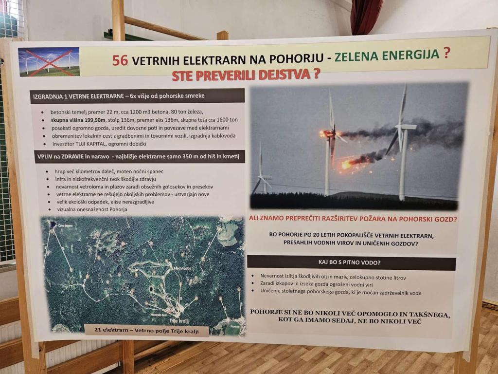 Kakih sto krajanov Tinja in tudi nekaterih bližnjih pohorskih krajev se je dopoldne zbralo v domu krajanov in gasilcev, kjer jih je predsednik krajevne skupnosti Maksimiljan Tramšek seznanil z novostmi glede projekta družbe Energija na veter, ki na območju Pohorja načrtuje postavitev 56 vetrnih elektrarn, ob 21 na območju Treh kraljev še 14 na območju Frajhajma in 21 na območju Kota na Pohorju.